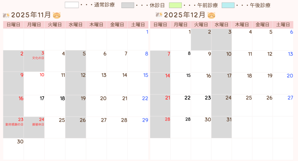 ※お昼休み中は手術、往診などのため電話対応ができないことがあります。