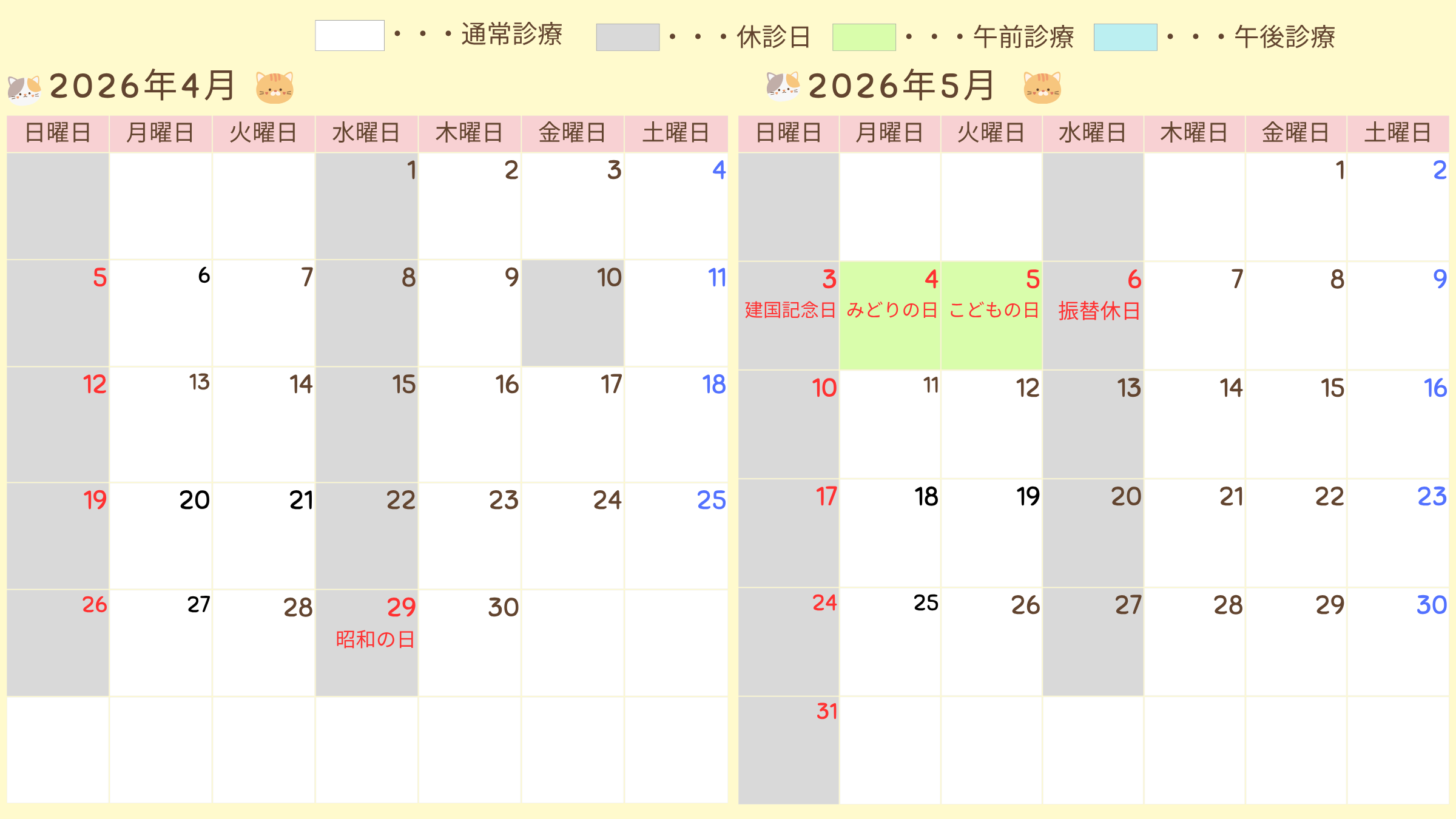 ※お昼休み中は手術、往診などのため電話対応ができないことがあります。