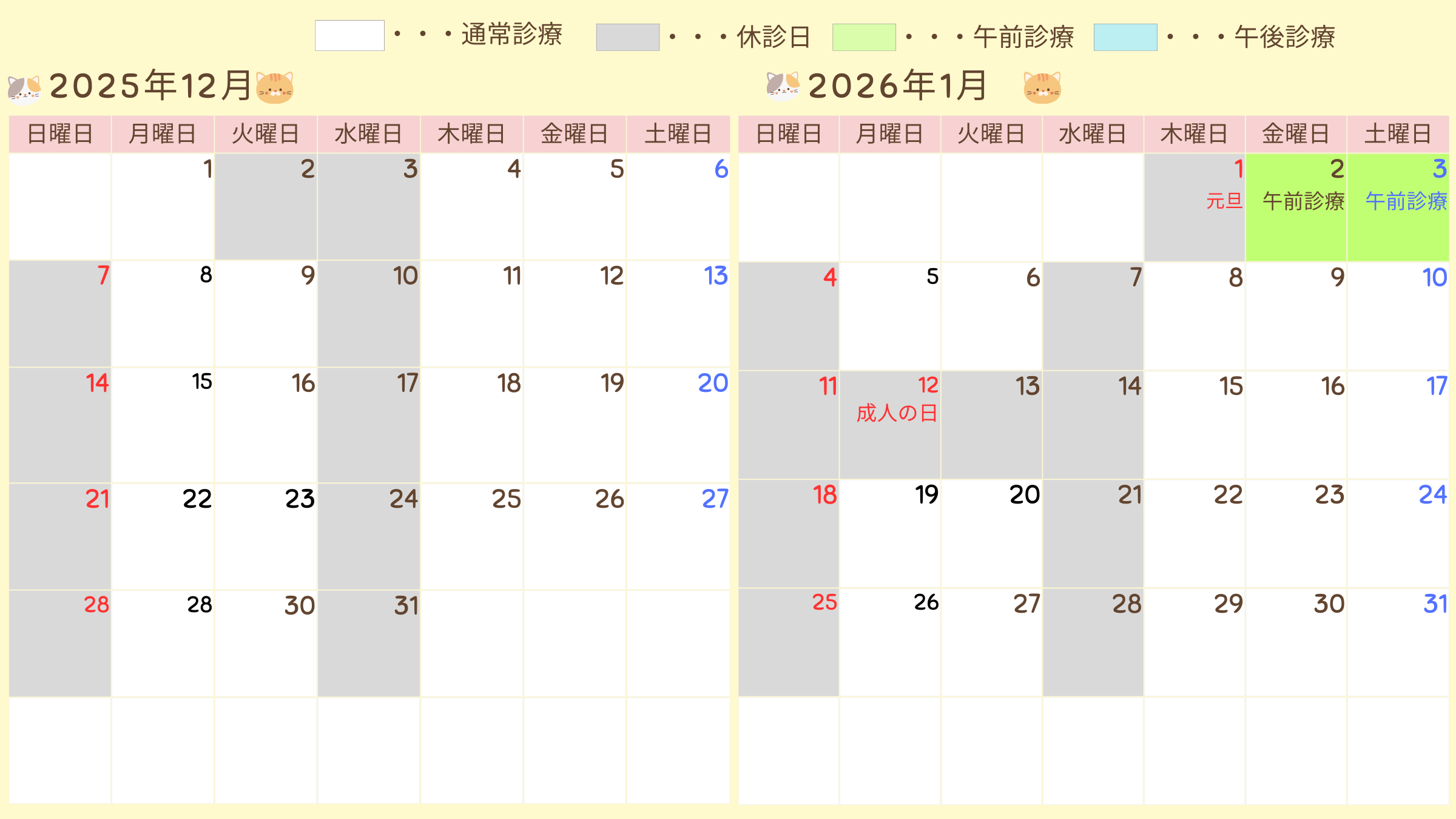 ※お昼休み中は手術、往診などのため電話対応ができないことがあります。