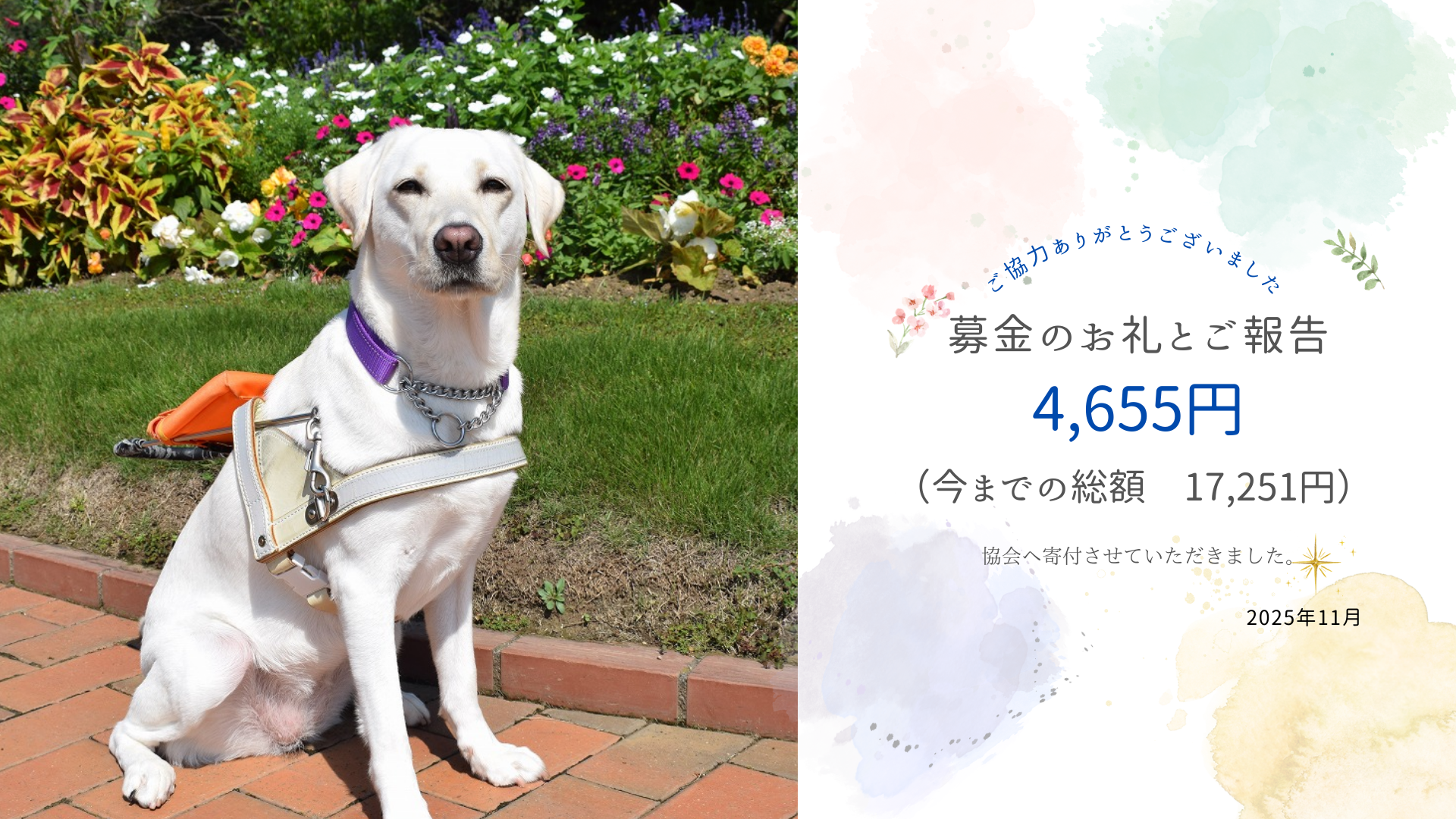 2025/11/28 募金のお礼 ✨ご協力ありがとうございます✨ 2025年11月までに 4,655円 のご寄付をいただき、累計寄付額は 17,251円 となりました。 本当にありがとうございました! お問い合わせはこちら